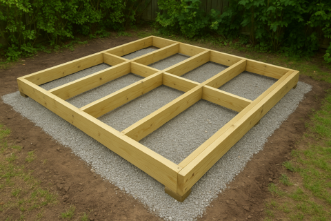 We start with a foundation built from 2×6 pressure-treated lumber, spaced 24 inches on center, ensuring superior strength and durability. You can choose between 4″ concrete blocks or tuff blocks as the base support.